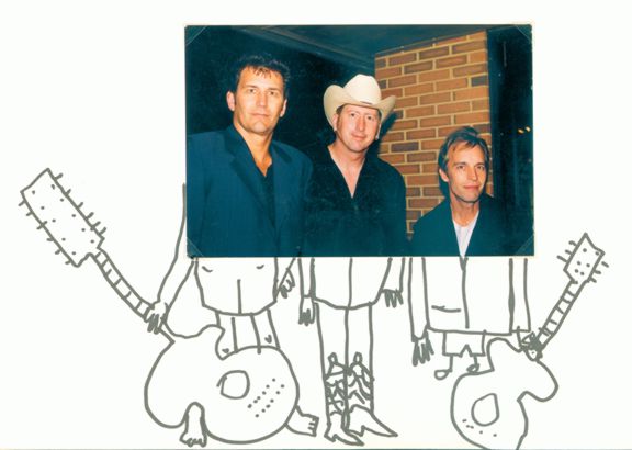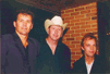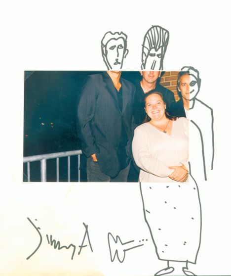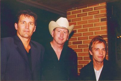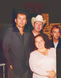 After getting everyone to sign my "Jesus Record" poster (from the bookstore) it was time to leave. My friends Julie and Wayne Johnson were waiting for me at the door. Rick walked by me, patted me on the shoulder, thanked me for coming and walked toward the door. I stopped him with "ohhh, I loved you......in "That Thing You Do". I think I kinda scared him, like some obsessed fan or something, until I completed the sentence! :> We all walked out together. I told him that after the concert in Lancaster we went home and watched "That Thing..." just to look for him. As we were watching someone would spot him and yell "Hey, there's.." Rick finished the sentence perfectly "...that guy!" Actually, he became the "Sweater Guy" because he wore a sweater in Lancaster. We talked for a few minutes about the weather, the problems they'd had with the sound system, and odds and ends. Rick and Wayne started talking about guitar stuff (Wayne is an incredible guitarist himself!!) Rick said at one point he was trying to figure out what "that noise" was until he looked down at his guitar and realized it was him. As we were talking Mark came out, then a little later Jimmy A come out. This was too much of an opportunity to pass up. I asked if I could take a picture. Sure! Then I asked if I could take one with me in it. Sure!! Julie offered to take the picture for me but since most people get nervous because my camera has to be focused I said Na, that's okay. Jimmy said "She's got a timer on it" So, I set the camera down and stood in front of some of my favorite musicians. A once in an lifetime opputunity! Someone (Jimmy or Jordan) mention that the camera seemed a little turned. Flash, too late! Oh yeah, Jordan Richter (This Train) was standing beside Jimmy in this. Didn't even get a sleeve. Sorry, Jordan (but thanks for signing my Wichita vacation album!!) I didn't want to take up anymore of their time. I just prayed real hard for a miracle! What I got was a good laugh! Hey, I'm not a computer geek for nothing! I can fix this, we have the technology! God gave me an incredible gift (a moment of time with the Rags), then humbled me! Actually, laughter is a gift also, so thanks again! Regardless of photographic flubs...it was a great evening spent paying tribute to a man whose songs, articles, and interviews have changed my life as a Christian (especially when I took time to read the books he talked about, I'd never heard of Brennen Manning until watching the Pursuit of a Legacy Video). But most importantly, changed my view of God from a God who was far off and loved me from a distance, to GOD who desperately wanted not only to be my Lord and Savior but also my friend. I CAN'T WAIT TO GET TO HEAVEN!