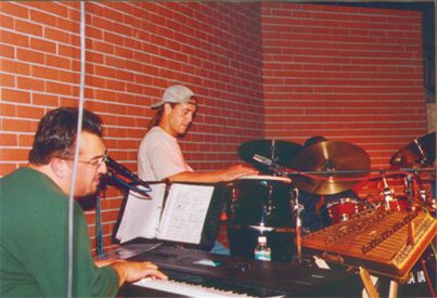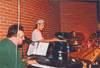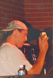 | This is Jimmy A, artist/musician extrodinare! I was talking to him about the artwork he did for "Exodus", he said it was some of his favorite that he ever done. I work part time (my sanity job) at a Christian Bookstore (Family Christian Bookstore #166), I told Jimmy I wanted to get one of the two Exodus posters off the wall for him to sign (but management wouldn't let me because they didn't have anything to replace it with), he said that "they" wouldn't even let him have one! By the way, I went back to the store a couple days later and they had taken them down and thrown them away. I almost quit my job but then I'd loose my sanity! :-) | Danl, I'm glad you know the keyboard player's name, Carl Herrgesell, because they didn't introduce him. He is incredible! The drums that Michael is playing in this picture are in-stock items at Jammin Java. They have the tags still on them.