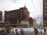This particular concert held some genuine historic nostalgia for some in the audience, as it was held in the historic Orpheum Theater near booming Old Town Wichita. Click here for more info on the Orpheum, especially these pictures from the early 70's of this gorgeous old building. (Can you tell I'm an Orpheum supporter?) Also as long as I'm straying from the subject, I must share with you this very cool painting. Click on the painting thumbnail above to see a bigger example and learn more about it and the artist, Hugh Greer. | ||