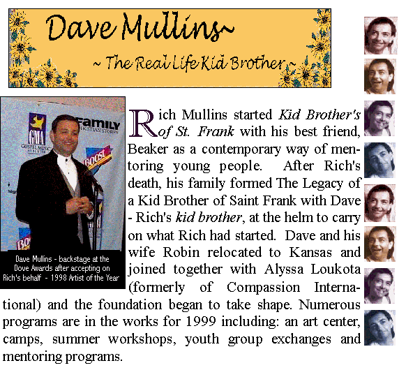 Dave: To share the love of Christ. To try to make this life a little better, bring a little hope, share a little joy and please God. Really, I do think that what he would want out of me and anyone else is to look for God's leading and go there. Not what they think Rich Mullins would want them to do.