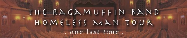 The Ragamuffins have been touring the Homeless Man Tour for over eight months. The "official" end of the tour was June 4th (1999) in Tulsa. However, when they were contacted by Gay Quisenberry, (Rich's former manager) and asked to come to Wichita for a benefit concert, they couldn't resist. | ||