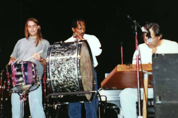 Left to Right: Michael Aukofer, Aaron Smith, and Rich playing a percussion laden instrumental tune.